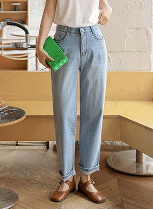 레직기 주름과 밑단 롤업으로 핏이 탄탄한 데님이구요!