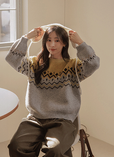 비비드한 컬러감으로 화사한 라운드 가디건! 그레이 컬러로 세련된 배색감을 보여주는 패턴이 포인트구요~ 보송보송한 울 소재로 자극 없이 따뜻하게 입을 수 있어요 -