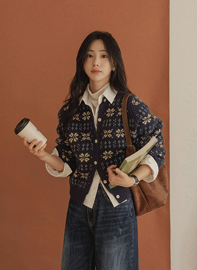 바디를 낙낙하게 감싸주는 베이직한 가디건으로 다양한 상의 위로 편하게 툭~ 걸치기 좋구요! 울 소재가 혼방되어 겨울내내 따뜻하게 입을 수 있답니다:) -