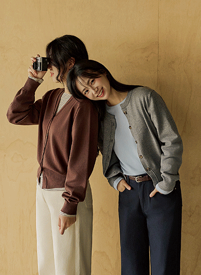 탄탄하고 쫄깃한 니트로 오래 입을 수 있는 아이템이구요, 라운드vs브이넥 2가지 타입으로 내 취향에 맞게 골라 입어요! 게다가 S,M,L 3가지 사이즈로 구성된 가디건이랍니다 :) -