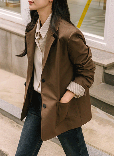 고급스러운 소재감에 넉넉한 루즈핏이 체형을 커버해주어 누구나 멋스럽게 입기 좋은 자켓이구요, 포켓에 장식이 매력적인 포인트가 되어줘요!