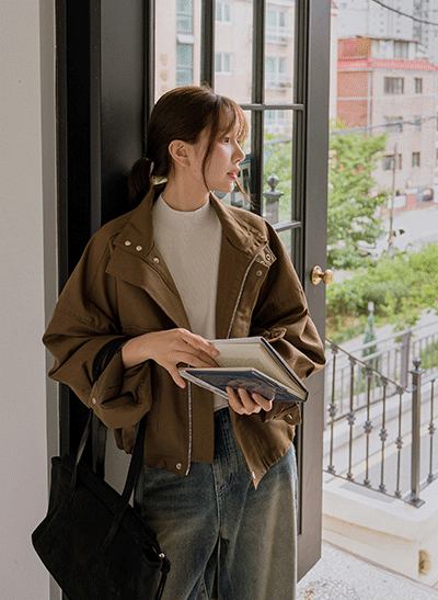 탈부착이 가능한 후드 디테일로 투웨이 스타일이 가능한 아우터에요 부클원단으로 포인트를 주어 캐주얼한 무드까지 더했답니다~