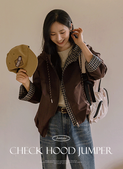 체크 배색 포인트로 산뜻한 후드 점퍼구요~ 넉넉한 핏이라 사이즈에 구애받지 않아 누구나 편안하게 입으며, 스포티한 아우터라 야외 활동을 많이 하시는 분들께 추천하는 아이템이에요!
