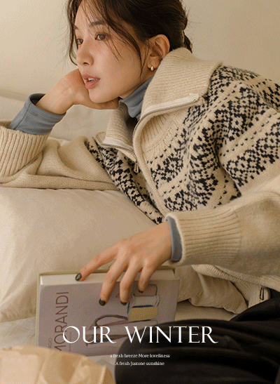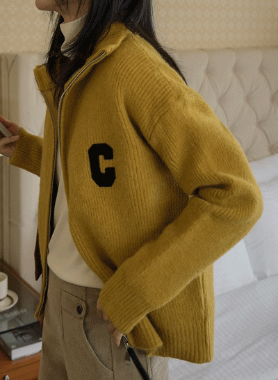 뽀글이 자수 패치가 포인트 되는 집업 니트예요~ 투웨이로 오픈되는 집업 디자인이 활용도를 높여주며, 폭신폭신 도톰해서 겨울까지 든든해요