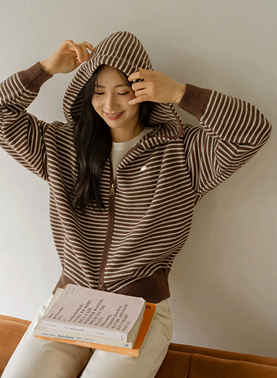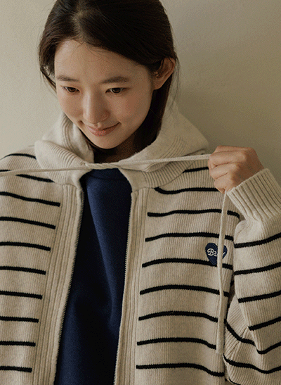 탄탄한 하트 패치 자수로 귀여움을 더해준 후드 니트 집업이구요~ 넉넉한 품으로 편안하게 걸치며, 심플한 무지와 경쾌한 스트라이프 2가지 패턴으로 구성되어 취향에 맞게 골라 입으실 수 있답니다!