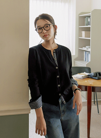 - 4DA31937NN_배색 포인트 셔츠 니트가디건