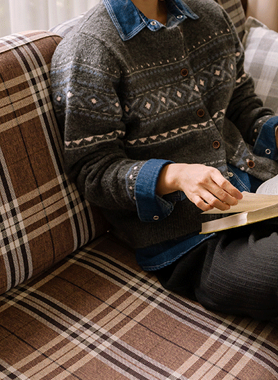 체크패턴원단의 배색과 셔츠를 입은것 같은 디자인의 소매라인으로 확실한 포인트가 되어주는 가디건이에요 군더더기 없는 깔끔한 스탠다드핏으로 데일리하게 착용하시기 좋답니다