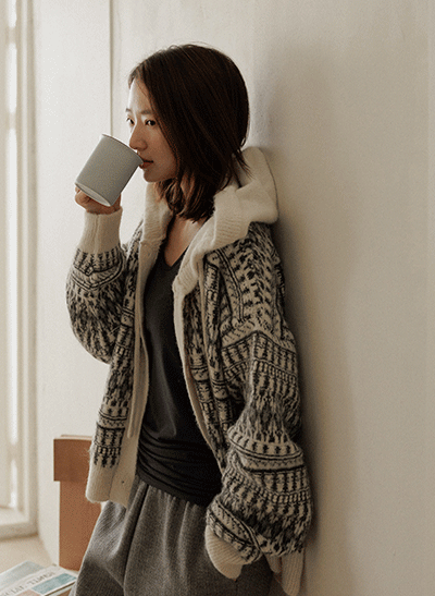 - 5DA32095JJ_폭닥한 자가드패턴 후드가디건