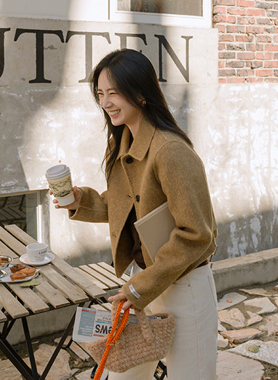 - 5DA32105HR_[HANDMADE] 러빙 히든버튼 숏코트