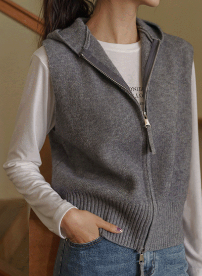 - 5DA32064HN_엘보 하이넥 니트 집업조끼
