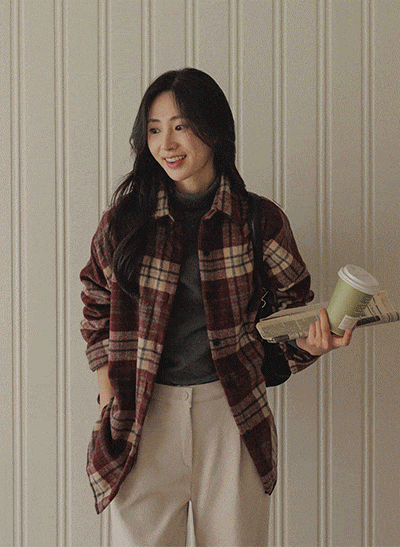 도톰한 모직체크로 겨울에 따듯하게 입기 좋구요, 넉넉한 품이 군살을 자연스럽게 커버해주어 편안하게 입기 좋고, 캐주얼한 스타일의 아이템이에요! -