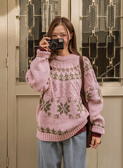 - 6DA32174JJ_둥근눈꽃 루즈핏 라운드니트