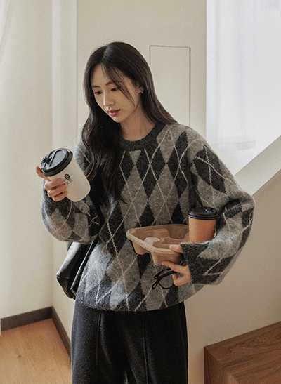 - 5DA32489HN_윈터아가일 여유핏 폭닥니트