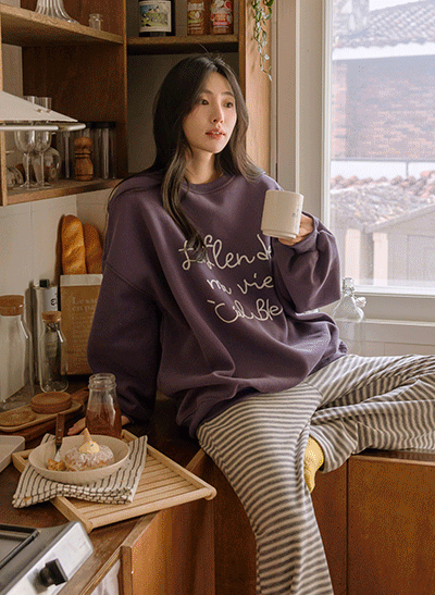 도톰하고 따듯한 융기모 자수 맨투맨과 박스핏으로 체형을 싹- 커버해주어 여리여리한 무드를 자아내는 아이템, 하나만 입어도 충분히 따듯한 겨울 맨투맨이랍니다~ -