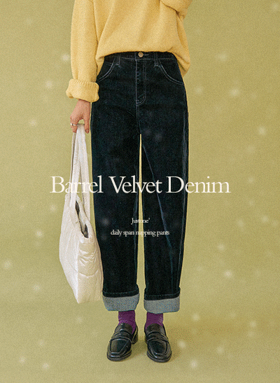 빛에 따라 고급스러운 광택이 도는 벨벳 데님으로 연말에 분위기 있게 착용하기 좋으며, 과하지 않은 커브드 핏으로 멋스러운 무드와 함께 군살이 커버되어 만족스러운 팬츠가 될 거예요! -