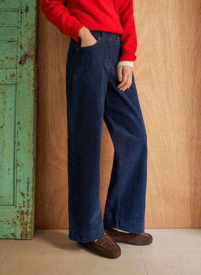 발끝까지 힘 있게 떨어지는 와이드 핏으로 다리 군살이 커버되는 팬츠구요~ 도톰한 양기모의 골덴 원단이 다리를 따뜻하게 감싸주며, 쫀쫀한 신축성으로 편안하게 입어요! -