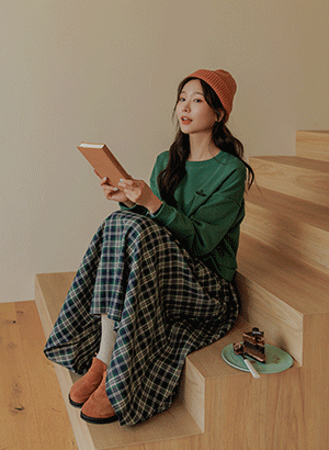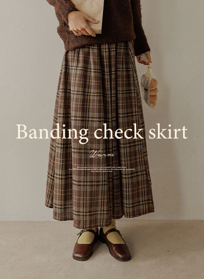 러블리한 무드로 착용되는 밴딩 체크 스커트! 롱한 기장감에 플레어 라인이 더해져 하체가 커버되는 아이템이구요~ 겉기모 원단으로 겨울까지 따뜻하게 빈티지한 감성으로 입으시기 좋아요:) -