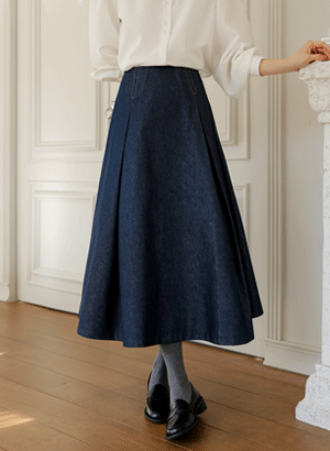 - 6DA29476YY_페이버 맞주름 A라인 데님스커트