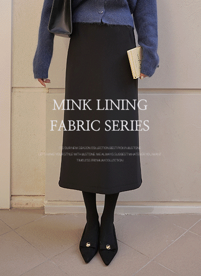 편안함과 몸매 보정, 두가지를 다 잡은 스커트! 허리 와이드 밴딩이 코르셋처럼 뱃살부터 옆구리살까지 싹- 잡아주어 옷태를 예쁘게 연출해주며, 도톰한 밍크 기모 안감으로 보온력까지 우수한 스커트예요 - 47,800원