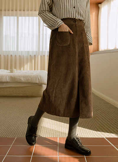 베이직하게 툭- 떨어지는 코듀로이 스커트구요, 앞포켓으로 귀여운 포인트가 되어주며, 앞트임으로 편안하게 입기 좋아요 - 32,800원