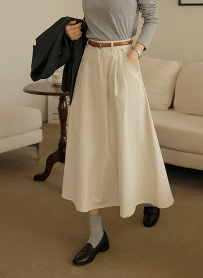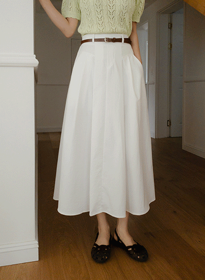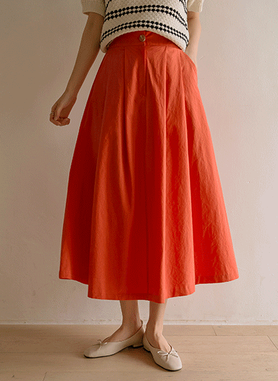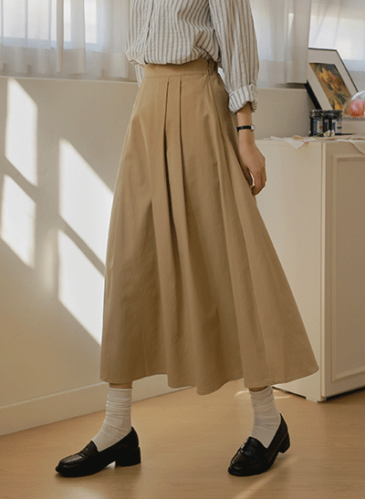 깔끔하면서도 담백하게 착용하기 좋은 코튼 스커트! 유연한 뒷밴딩이 허리를 편안하게 잡아주며, 프론트 핀턱 주름을 따라 낙낙하게 떨어지는 롱 플레어 라인이 통통한 다리를 자연스럽게 커버해줘요~ - 34,800원