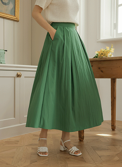 - 5DA31536HN_가볍게 바스락 랩핀턱 스커트(기본/롱)