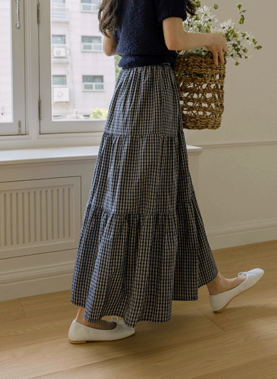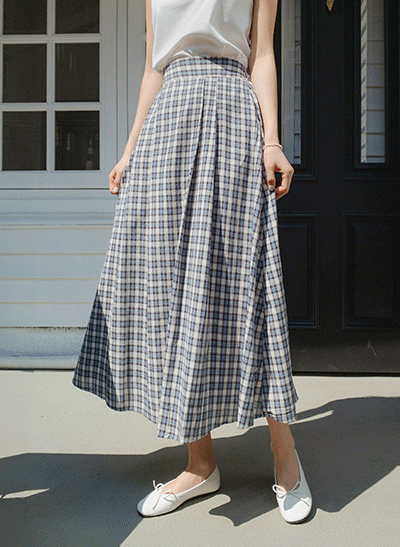 산뜻한 체크 패턴이 매력적인 플레어 체크 스커트에요! 롱한 기장감이 체형을 자연스럽게 커버해줘요 - 32,800원