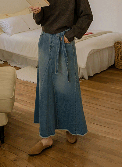 - 6DA31867HR_플레어핏 절개선 데님스커트(벨트set)