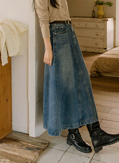 롱한 기장감으로 하체 군살을 싹- 커버해주고, 절개선으로 트렌디하면서 플레어핏이라 여성스러운 무드를 자아내는 데님스커트에요 - 33,000원