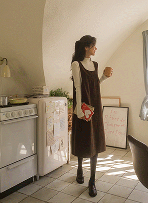 브이넥 디자인으로 레이어드하기 좋은 나시 원피스구요, 부드럽고 포근한 골덴 소재로 f/w에 잘 어울려요! 낙낙한 핏이 군살을 커버해주는 아이템이랍니다 - 50,400원