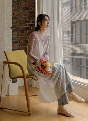 다양한 상의와 레이어링하기 좋은 나시 원피스이며, 부드러운 코듀로이 원단으로 따뜻하게 입을 수 있구요~ 양쪽 리본으로 핏 조절을 하여 여성스러운 라인감을 연출할 수 있답니다! -