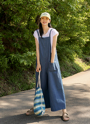 - 6DA30007YY_넉넉핏 어깨끈 데님 점프수트