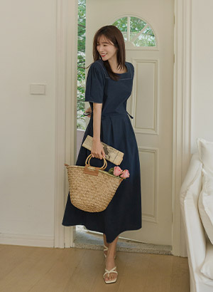 스퀘어넥 스티치로 단아한 분위기를 자아내는 코튼원피스! 데일리는 물론, 하객룩이나 출근룩으로도 추천해드려요~ - 44,000원