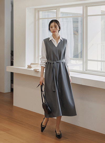 - 5DA31120HN_릴렉스 브이넥 나시원피스(벨트set)