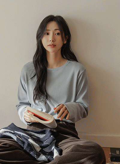 내추럴한 반목 티셔츠로 목을 조이지 않아 편안하게 착용 가능하구요, 안쪽에 부드러운 속기모로 f/w에 이너로 입기 좋은 아이템이에요 -