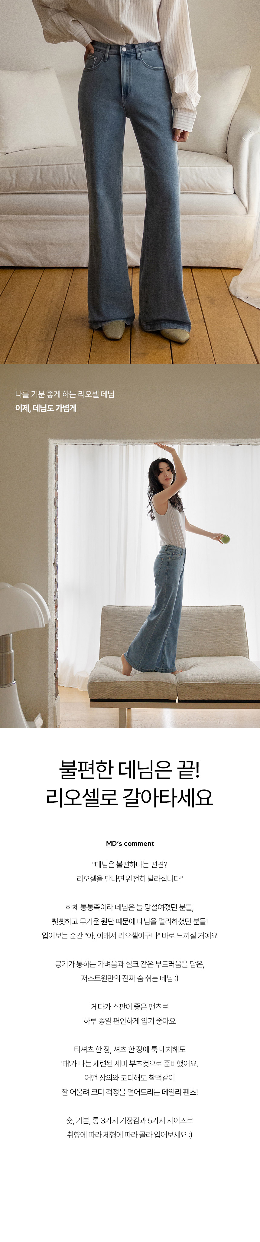 숨쉬는 데님 리오셀 부츠컷진(숏/기본/롱)