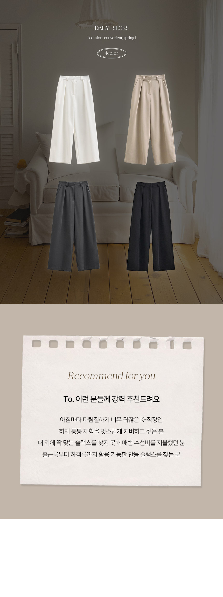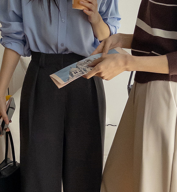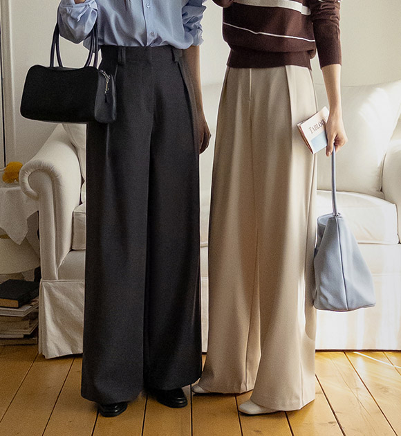 출근룩 고민할 때, 입기 좋은 링클프리 슬랙스에요! 넉넉한 와이드핏으로 세련된 감성을 자아내며, 구김이 잘 생기지 않아 언제나 말끔한 핏을 연출해준느 아이템이랍니다