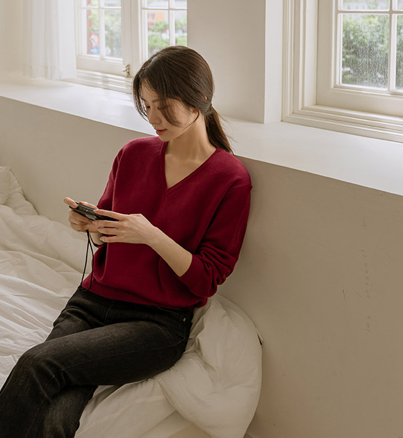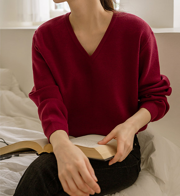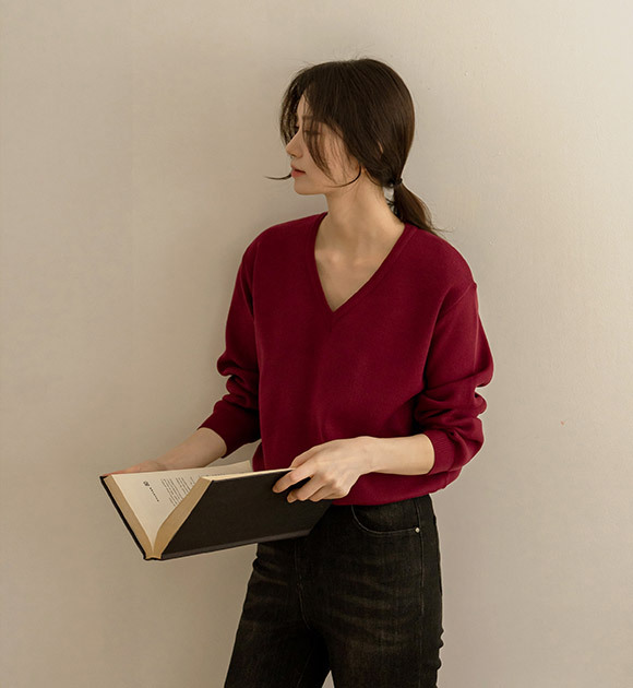 WON JEONG / WINE color, FREE size, V-NECK