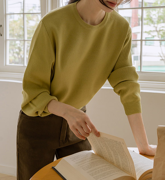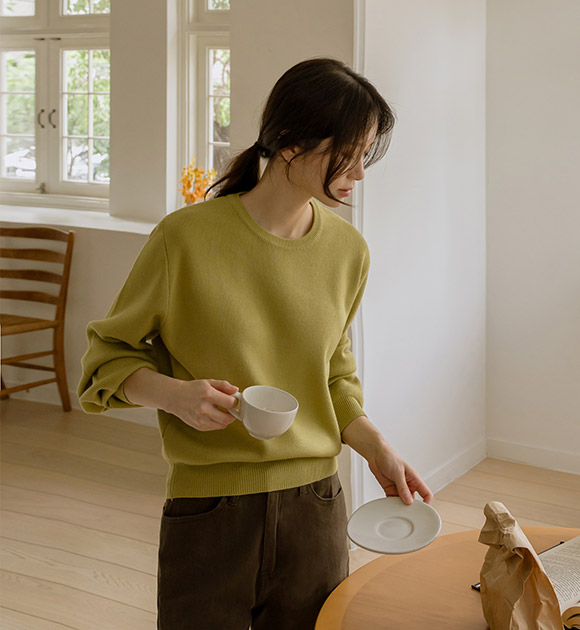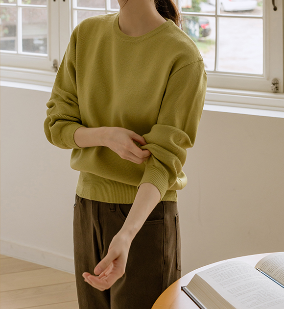 WON JEONG / OLIVE color, FREE size, ROUND NECK
