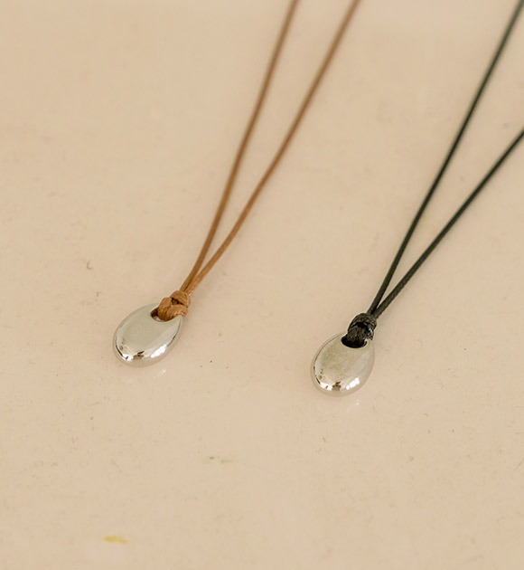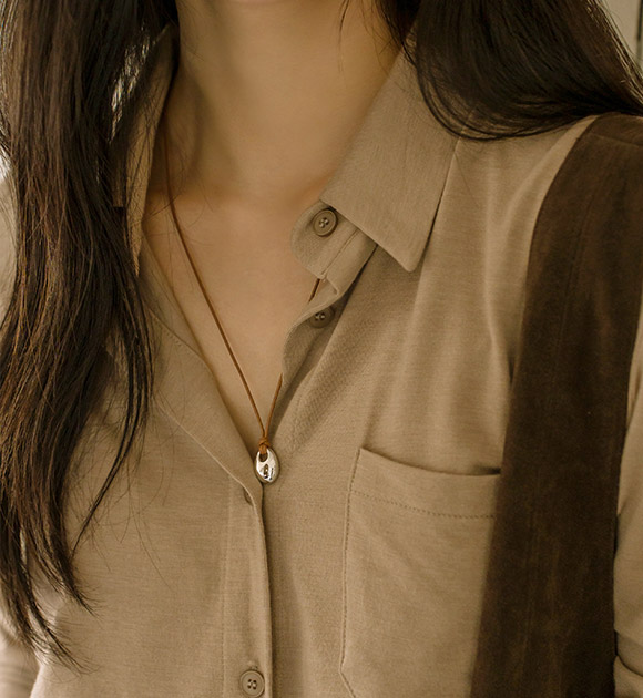 빈티지한 무드로 연출하기 좋은 목걸이 소개해드려요 레더줄과 타원심볼로 디자인되어 심플하면서 룩에 확실한 포인트가 되어주는 아이템 입니다