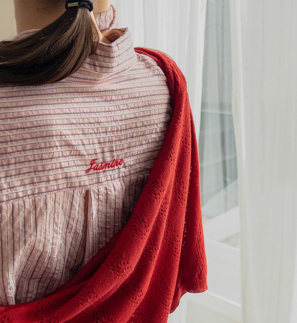 쟈스민 포인트자수 줄지셔츠
