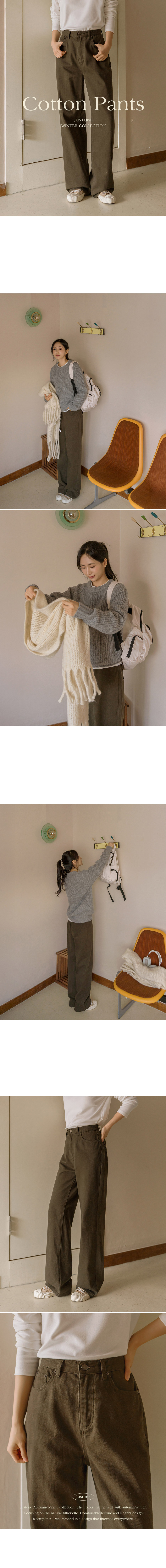 트렌디함이 느껴지는 롱한 와이드핏에 속기모로 따듯한 면팬츠구요, 하나하나 매력적인 5가지 컬러들로 구성된 면팬츠로 컬러별로 소장하길 추천해드려요~