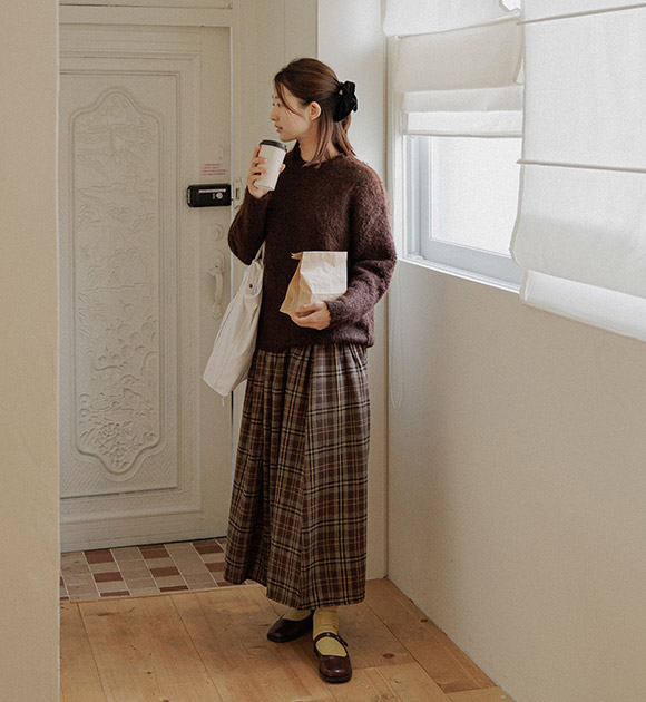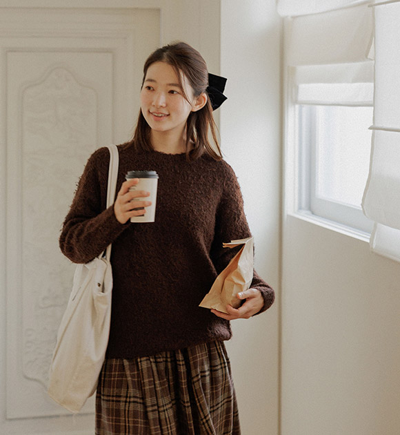 SU AN / BROWN color, S size, ROUND-NECK