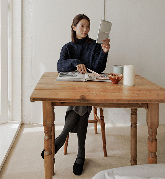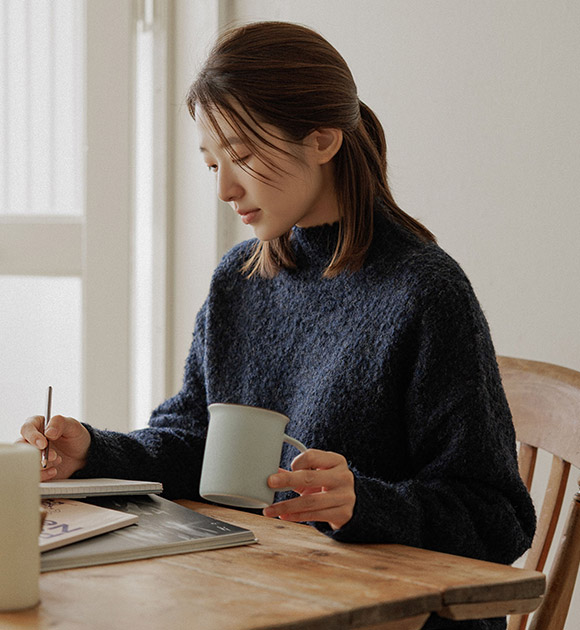 SU AN / NAVY color, S size, HALF-NECK