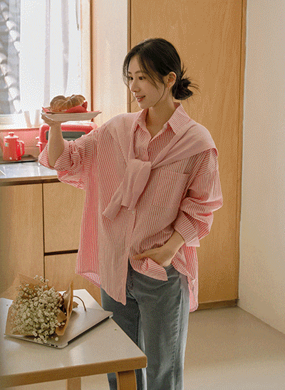 - [JUST BETTER] 로제 스트라이프 포켓 셔츠