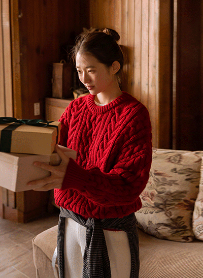 굵은 꽈배기 짜임으로 입체감이 멋스럽게 느껴지는 니트구요~ 도톰한 두께감이 상체를 폭닥하게 감싸주며, 베이직하게 코디할 수 있는 니트라 활용도가 높답니다! -