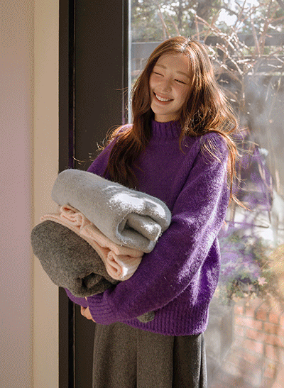 뒷부분에 맞주름으로 포인트가 되어주는 니트라서 머리를 묶어도 예쁘고, 도톰한 울 소재로 보온성이 뛰어나 따듯하게 입기 좋은 아이템이에요 -