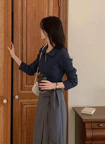 깔끔한 카라넥으로 단정한 무드를 연출해드리면서 취향에 따라 연출이 가능한 반오픈 버튼 디테일로 포인트를 주었어요 쫀쫀한 세로골지 짜임은 슬림한 실루엣을 연출해 드린답니다 -