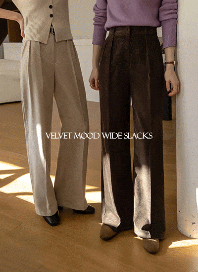 고급스러우면서 세련된 무드가 느껴지는 벨벳 슬랙스! 허리는 밴딩으로 편안하게 잡아주고 핀턱 디테일로 부해 보임 없는 핏! 오피스룩,하객룩 등 다양하게 즐기시기 좋은 아이템이에요 -