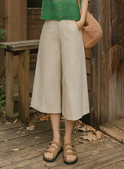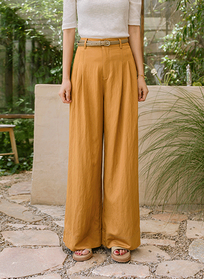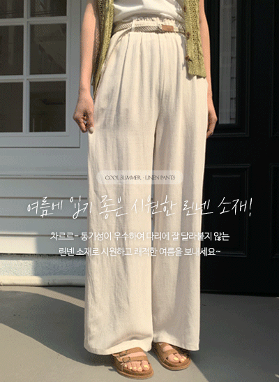 통기성이 우수한 린넨 소재로 여름에 편안하게 입기 좋은 와이드 팬츠구요, 말끔한 핏으로 출근룩으로 활용해도 좋은 아이템이에요!